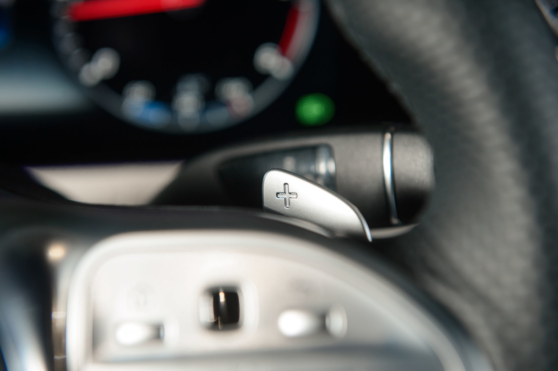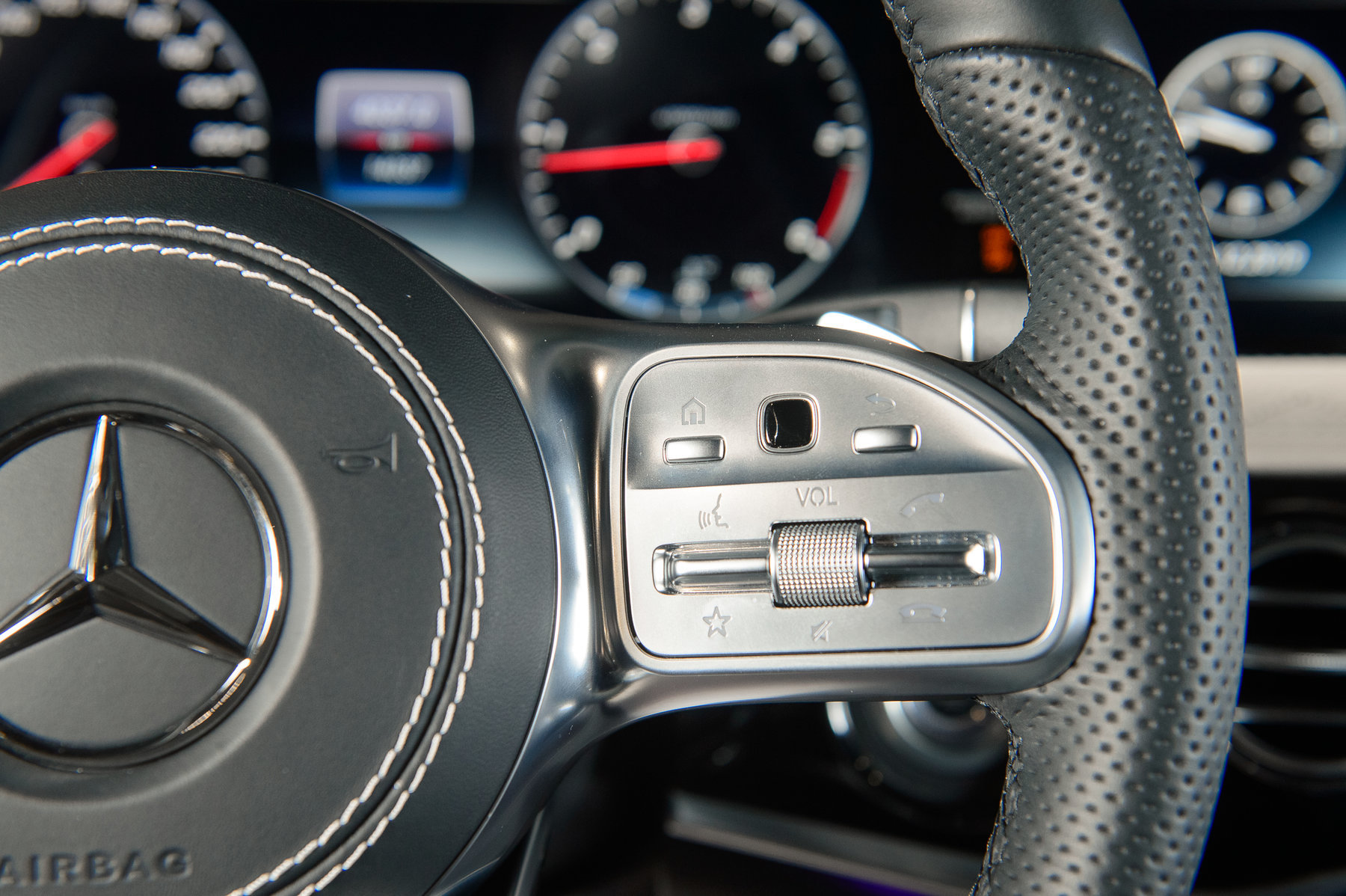 Мультифункциональное рулевое колесо с обогревом в исполнении из кожи.