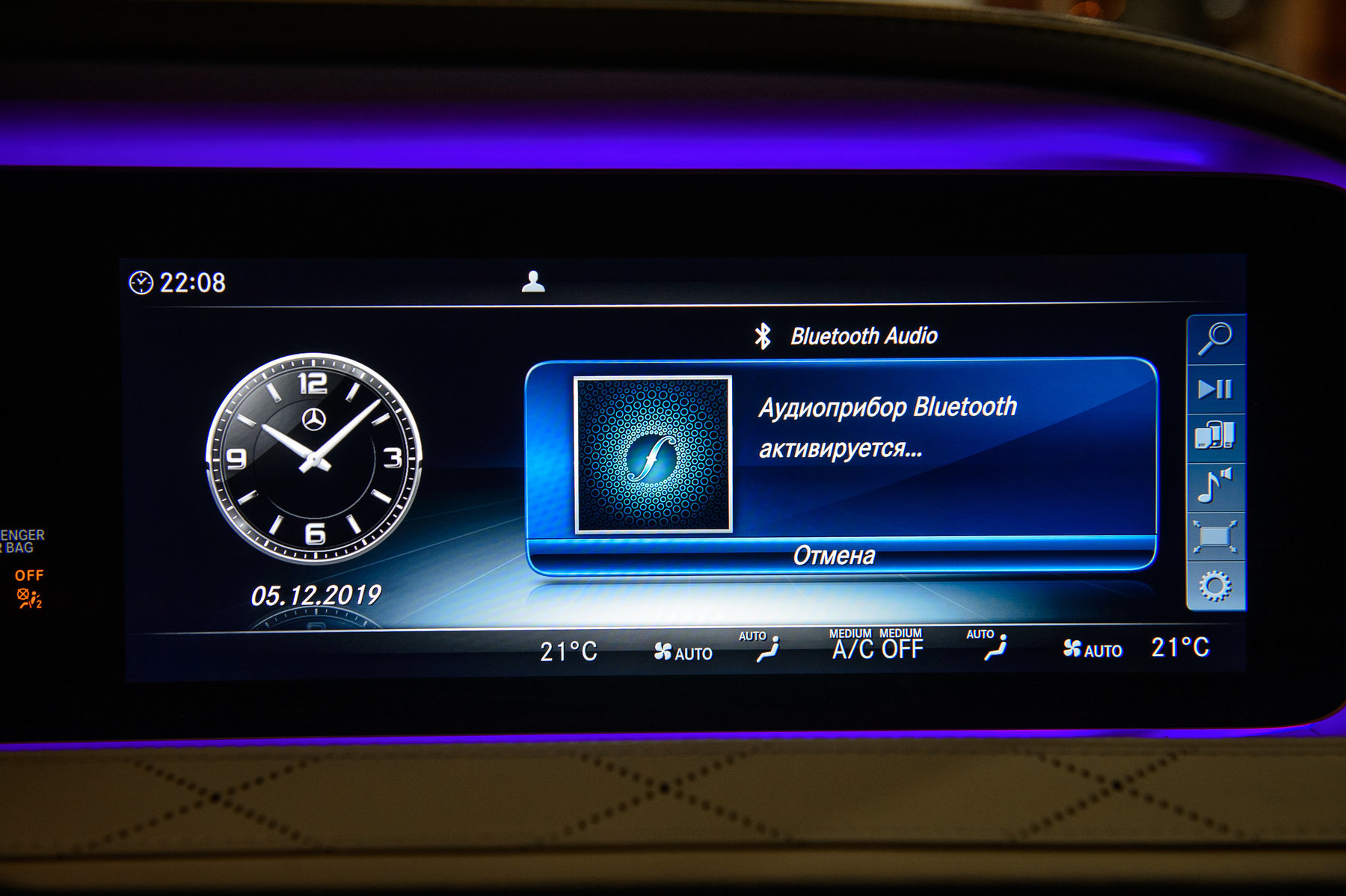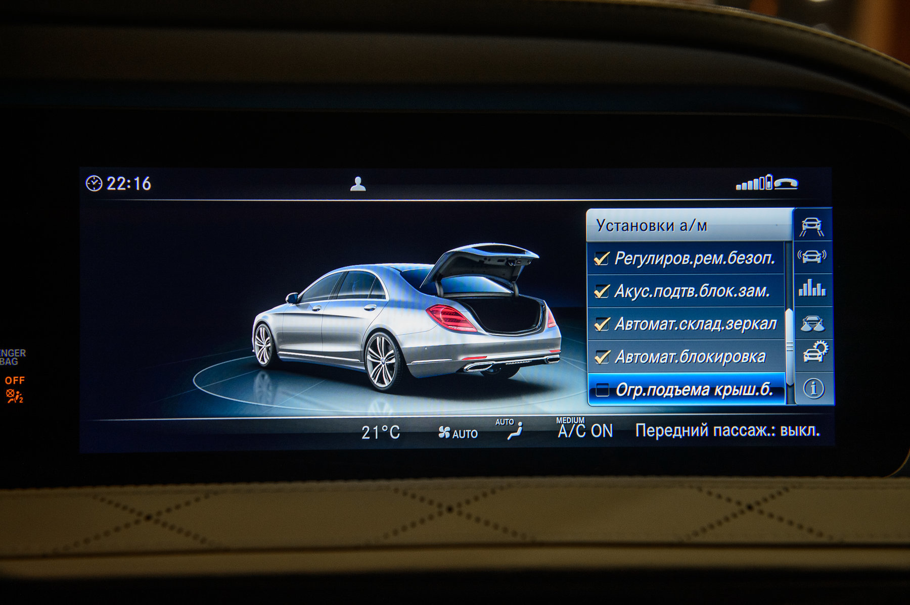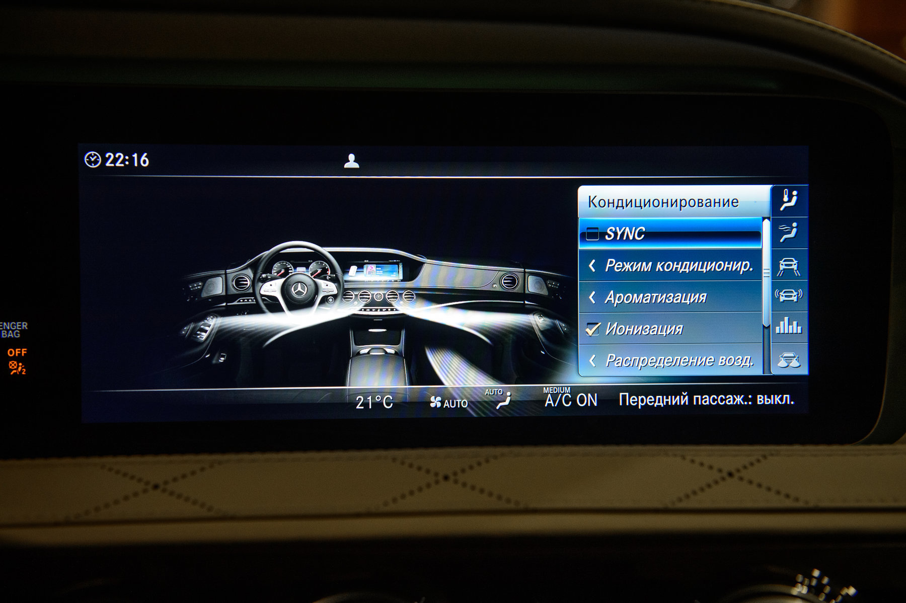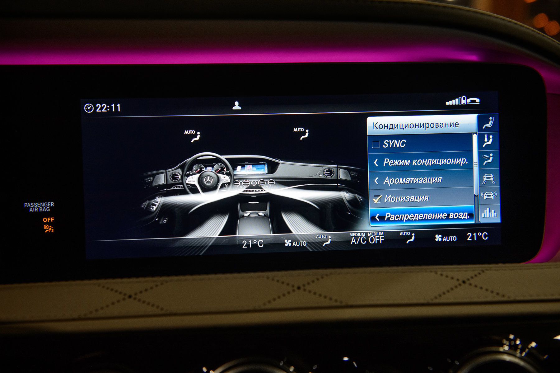 Система кондиционирования сидений водителя и переднего пассажира.
