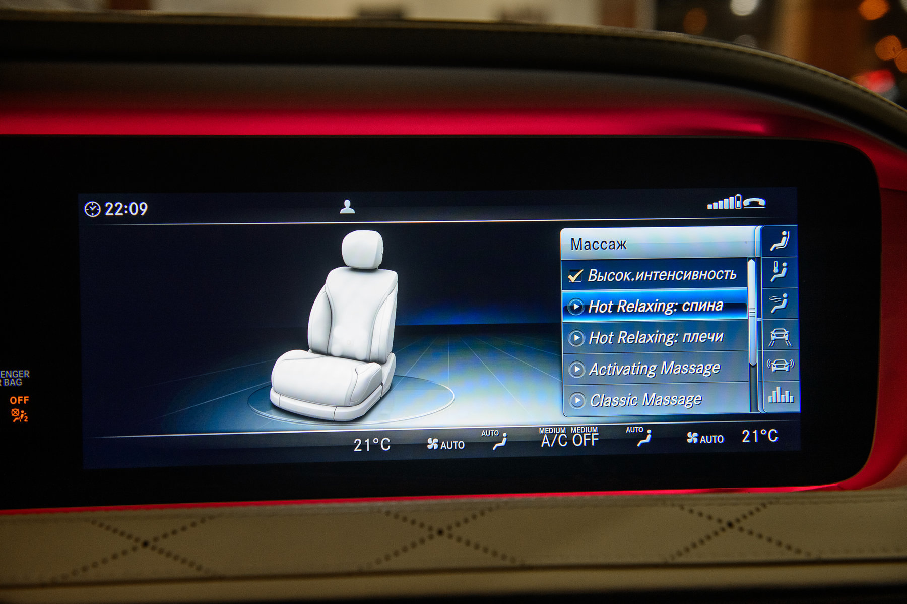 Пакет активных мультиконтурных сидений.